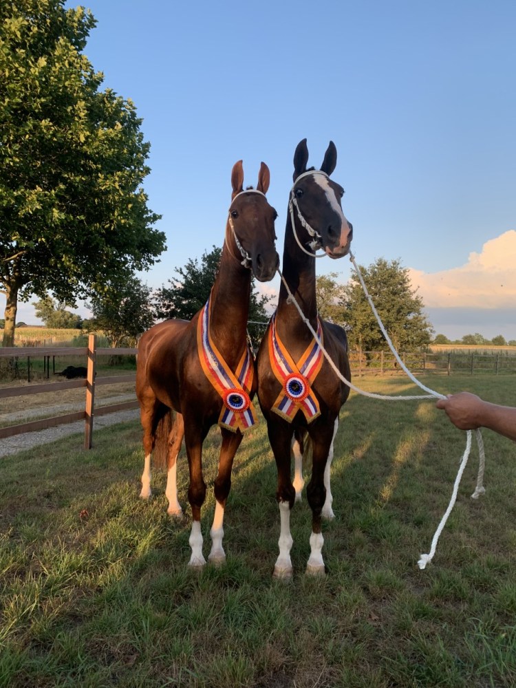 Het was weer een prachtige dag met als hoogtepunt de tweede Nationale titel voor Nalanita. Vorig jaar behaalde ze deze bij de driejarige merries. Daarmee treedt ze in de voetsporen van familielid en stalgenoot Taunita die ook als driejarige en als vierjarige de nationale titel won. Na afloop poseerde beide merries voor de camera.