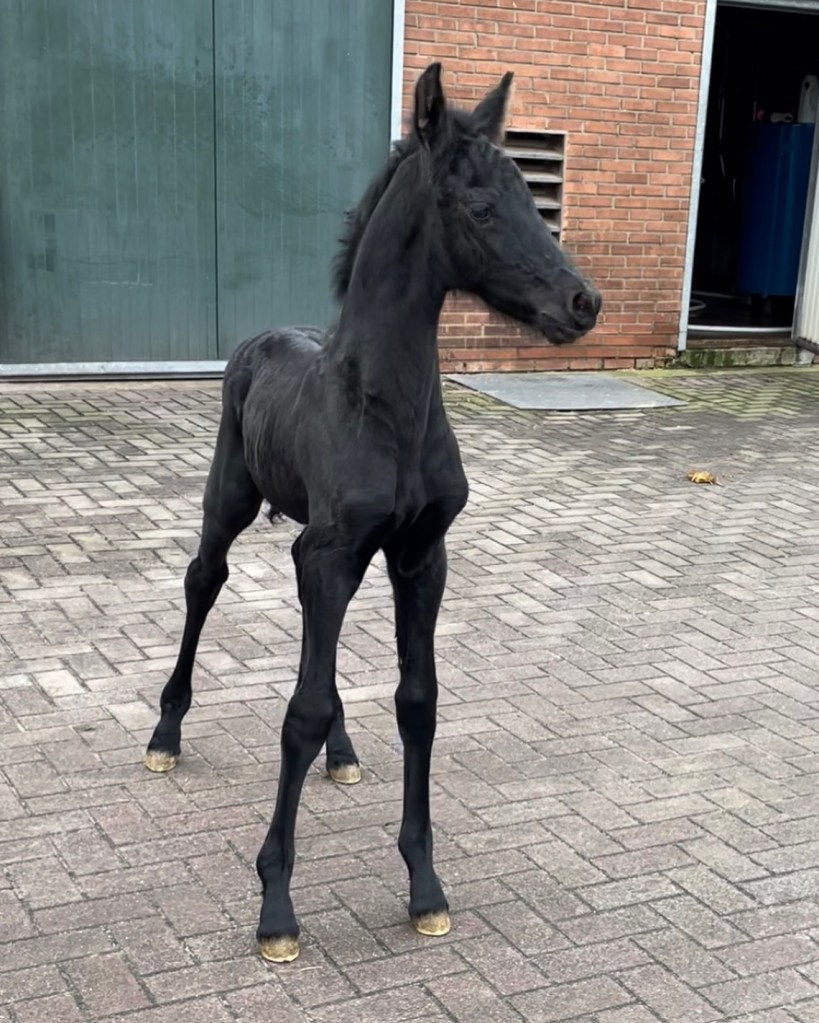 Gisteren is op de Fanita Hoeve het eerste Friese veulen geboren.