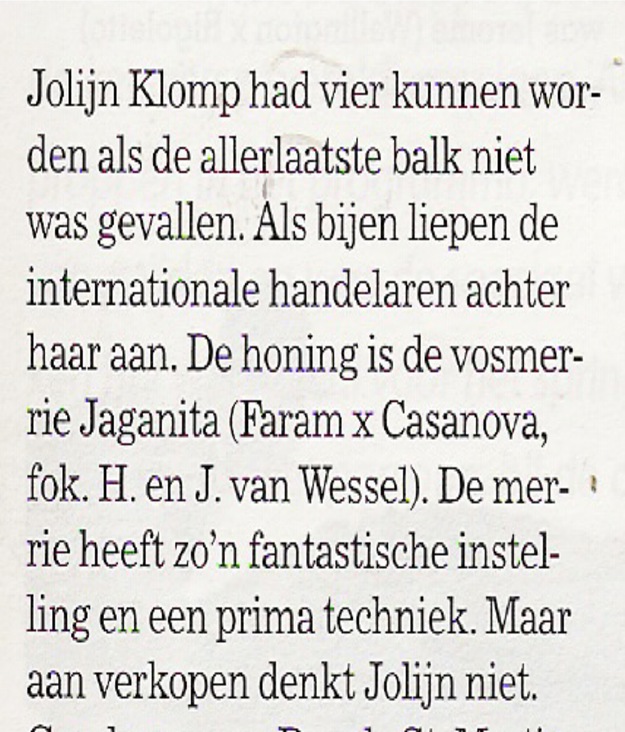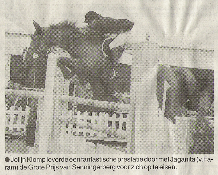 Jaganita begon haar carrière als internationaal springpaard onder het zadel van Jolijn Klomp. Jolijn verkocht haar aan de Duitse amazone Karin Ernsting-Engemann. Jaganita behaalde 45 grote overwinningen voor Duitsland.